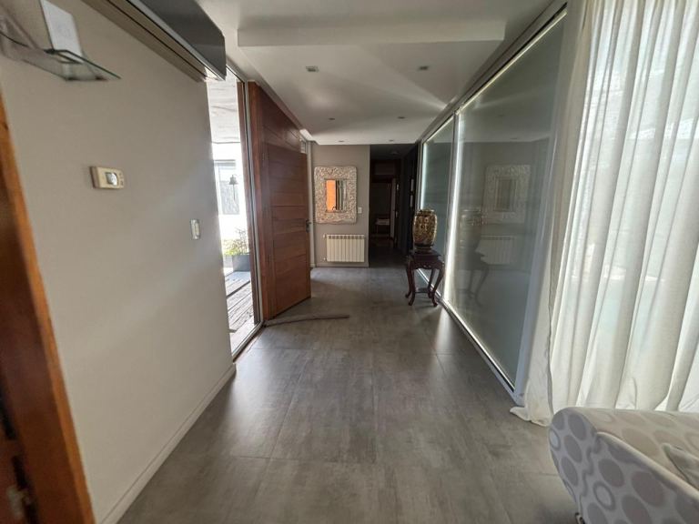 La propiedad también cuenta con aire acondicionado y conexión a internet. En el exterior, se encuentra una piscina climatizada con cierre para invierno, ideal para disfrutar durante todo el año. La cochera tiene espacio para cuatro vehículos y el barrio privado ofrece seguridad las 24 horas.